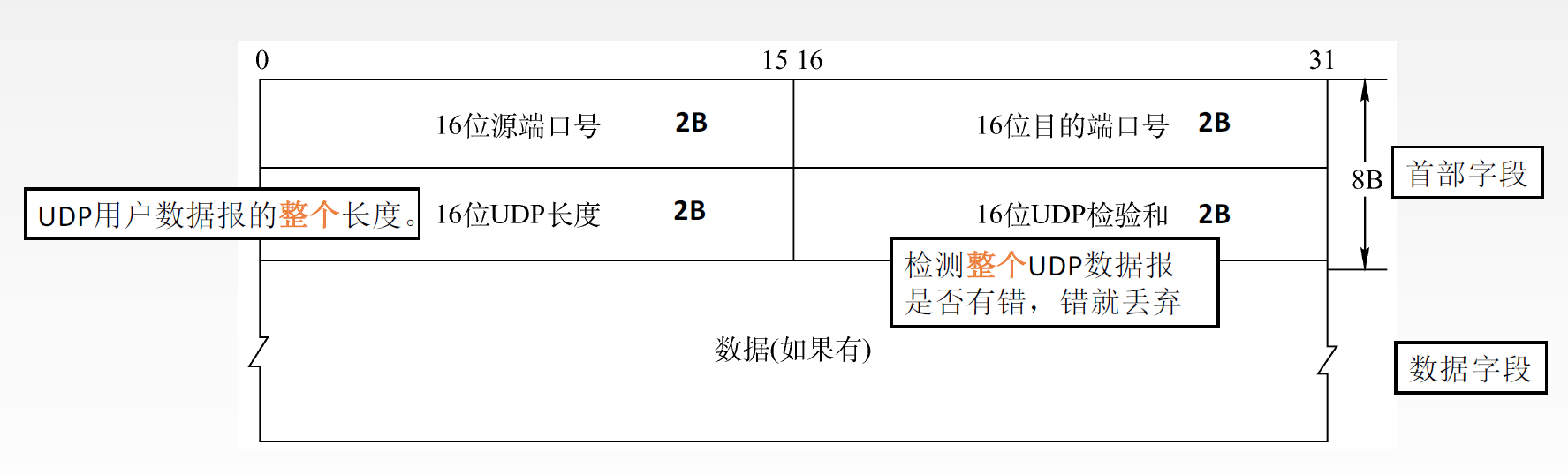 UDP 长度:UDP 首部 8B + 数据部分长度(不包括伪首部)