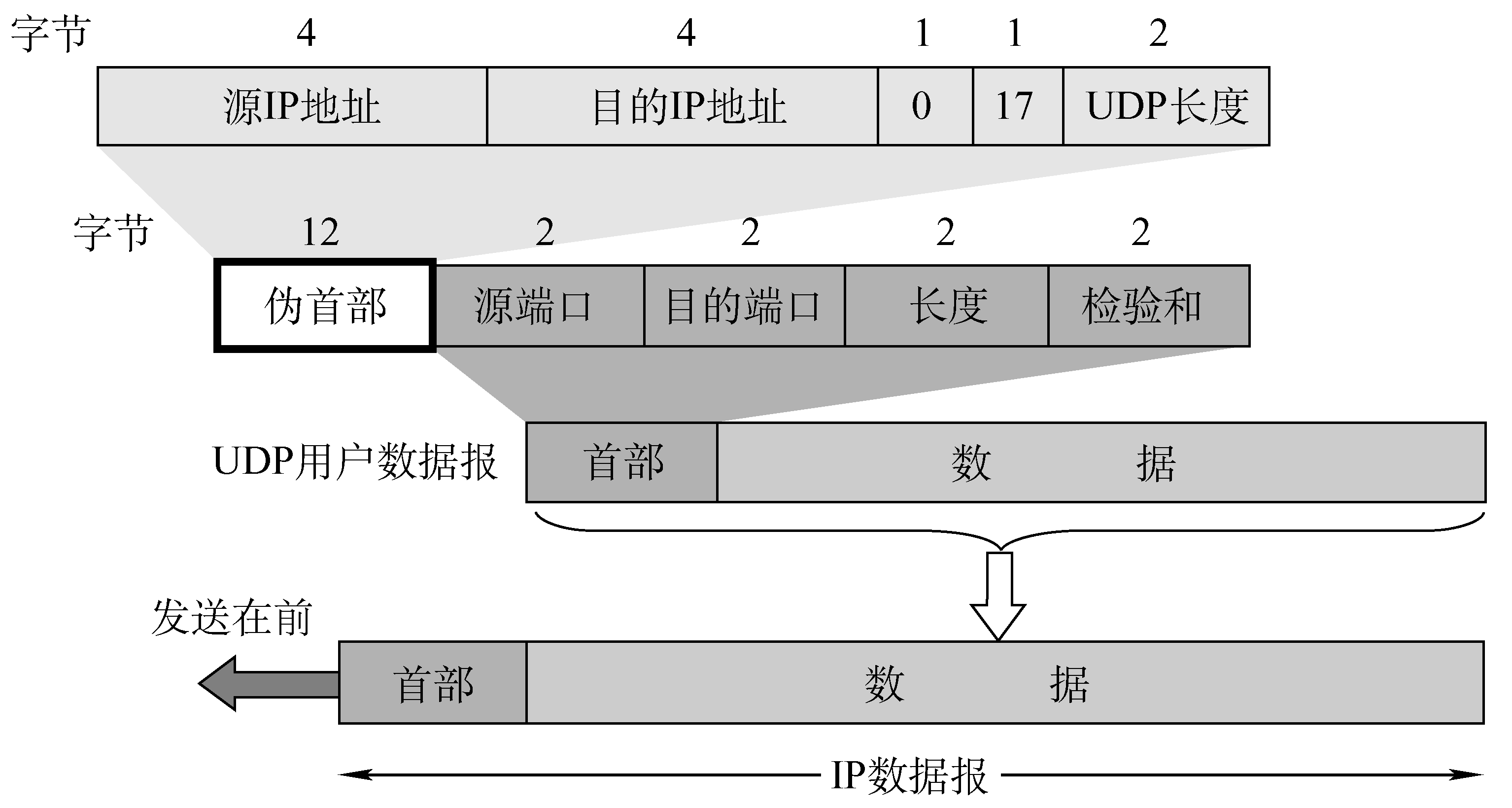 伪首部只有在计算校验和时才出现,不向下传送也不向上递交